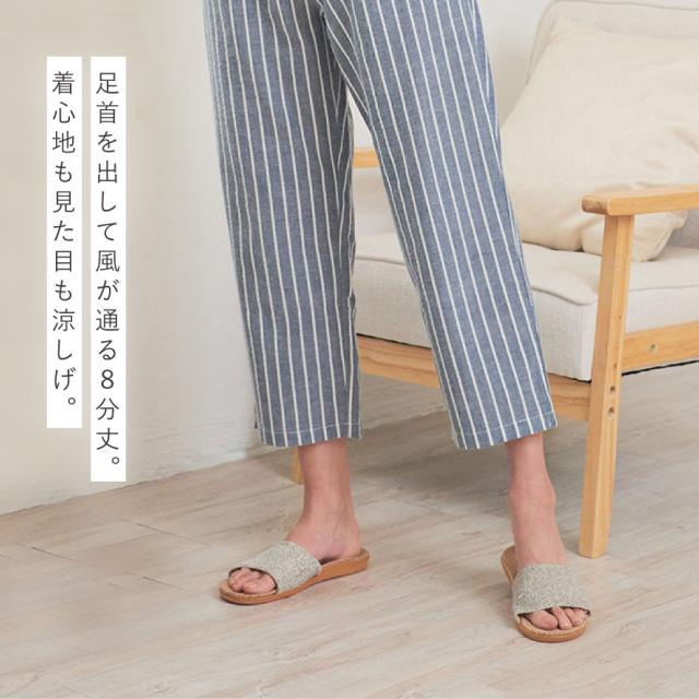 足首を出して風が通る8分丈。着心地も見た目も涼しげで、細見え効果も。