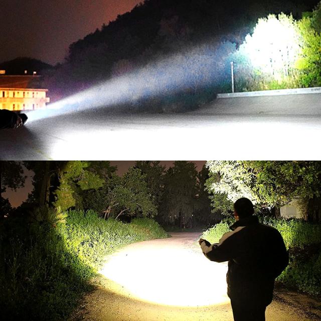 【10000 高ルーメン懐中電灯】耐久性のあるLEDチップ使用、最大ビーム距離500メートル (1640フィート) 、部屋全体を簡単に照らしたり、最大1600フィート離れたところの物に焦点を当てたりできます。 長距離観測に適した強烈スポットライト。