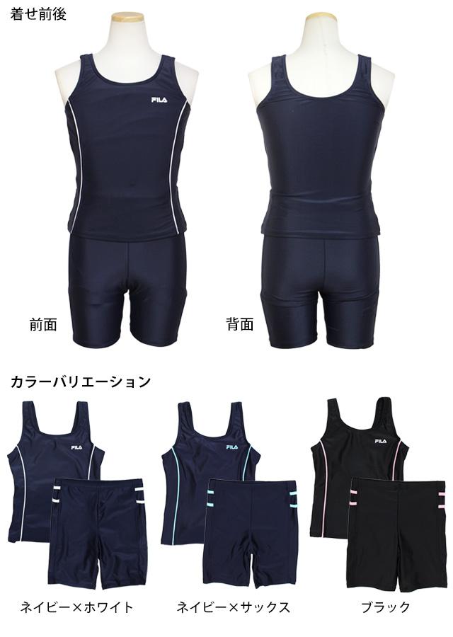 スクール水着 女子 女の子 キッズ ジュニア 子供 フィラ FILA スパッツ めくれ防止 セパレート水着 体型カバー 学校 プール 水着