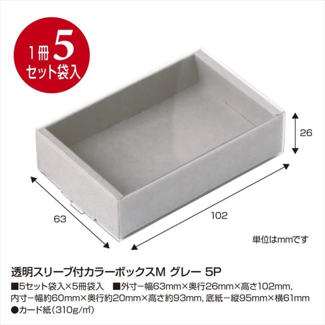 透明スリーブ付 カラーボックス グレー 約60×10mm 1冊 5セット入 ラッピング資材 梱包資材 ギフトボックス 包装 問屋 プレゼント SASAGAWA ギフト包装 アクセサリー パーツ ハンドメイド 材料 アクセサリーパーツ 問屋 卸 おすすめ さや工房 手作り