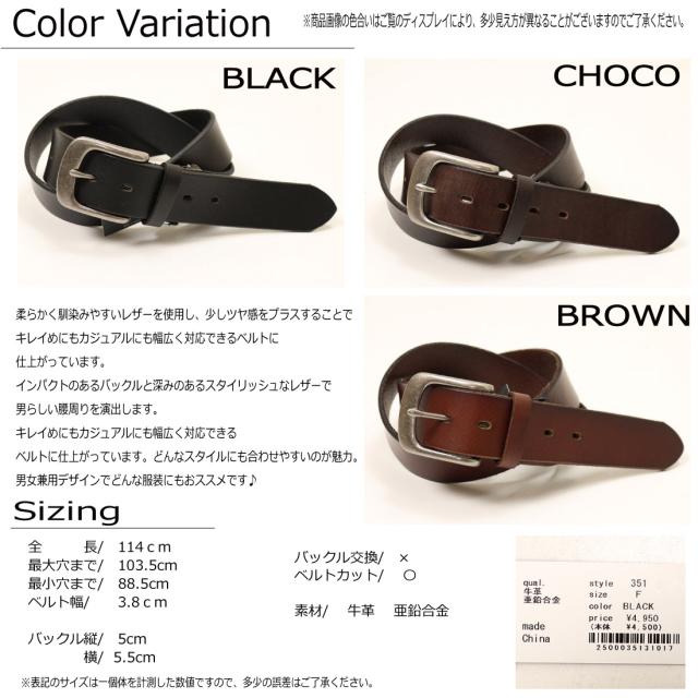 ホークカンパニー Hawk Company 牛革 ベルト 351 キレイめ カジュアル レザー ベルト 男女兼用 プレゼント ブラック チョコ ブラウン カット可能 サイズ調節可