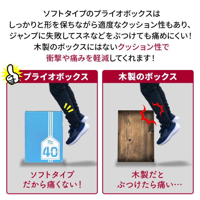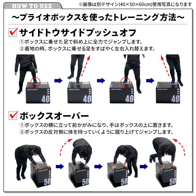 【様々なトレーニングができる】下半身の瞬発力の向上が期待できるデプスジャンプ、サイドトゥサイドプッシュオフ、肩や胸の筋力の向上が期待できるボックスオーバーなどたくさんの運動ができます。置く面を変えることで高さを変更できるため、自身のレベルやトレーニングの種類に合わせた使い方ができます。