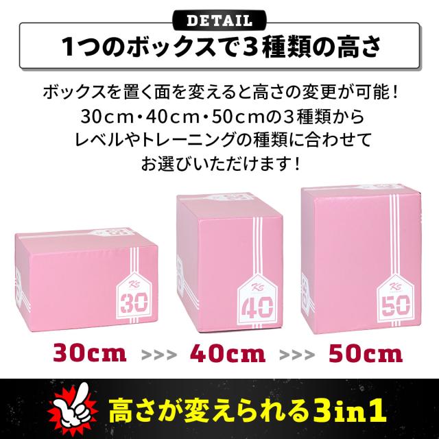 プライオメトリクストレーニングができるジャンプボックス!30、40、50cmの3種類の高さに変更できるから、自分に合ったレベルで筋力と瞬発力の向上が目指せる!防水PVC素材でお手入れ簡単