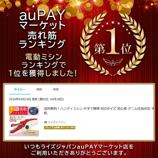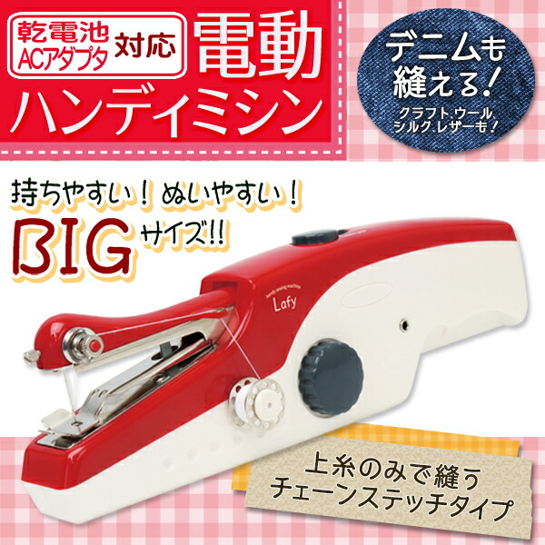 送料無料 ! ハンディミシン 片手で簡単 BIGサイズ 初心者 デニム生地対応 手作りマスクにも◎ 電動ミシン コンパクト 電池 ポータブル AC電源 ハンドミシン 本体【 手芸 趣味 裁縫 新生活 お直し 裾上げ 3000円 以下 の商品】 ( 日本郵便 ) 送料込 60N◇ ミシンLafy