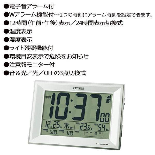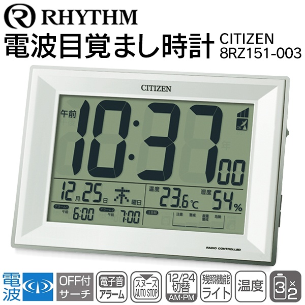 送料無料 ! 目覚まし時計 CITIZEN シチズン 電波時計 温度・湿度計付き アラーム 乾電池式 大画面【 めざまし時計 置き時計 デジタル時計 多機能 クロック 卓上 デスク 寝室 コンパクト 小型 クリスマス プレゼント 新生活 】 送料込 ( 日本郵便 ) 60N◇ 時計8RZ151-003