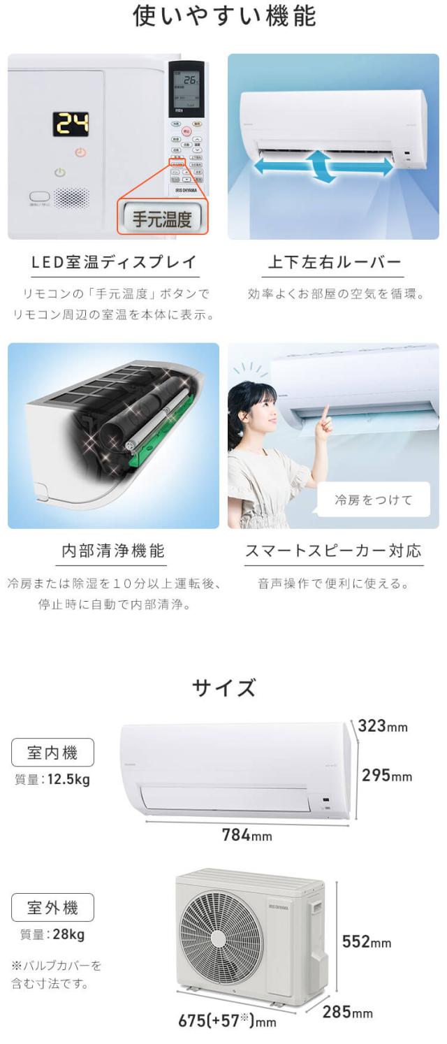エアコン 10畳 工事費込み 【標準取付工事費込】フィルター自動清掃機能付エアコン2.8kW IAF-2807M フィルター自動清掃 エアコン クーラー 暖房 冷房 空調 2.8kw 家庭用 リモコン 上下左右ルーバー 内部清浄 スマートスピーカー対応 タイマー アイリスオーヤマ 送料無料