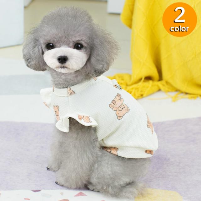 ドッグウェア ペットウェア カットソー 犬服 猫服 小型犬 ペット用品 洋服 クマ くま フリル袖 おしゃれ かわいい プルオー