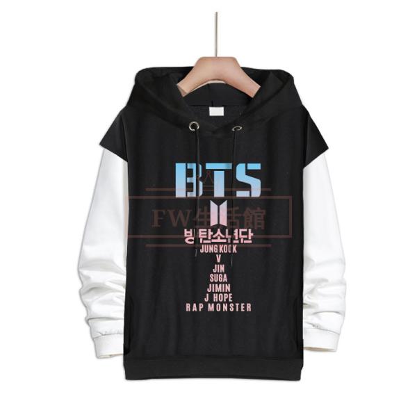 BTS(防弾少年団) コスプレ衣装 スウェット 偽2つコート 帽子付き パーカー男女兼用ジャージ春秋運動服 打歌服 応援服 韓流グッズ