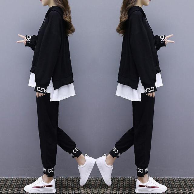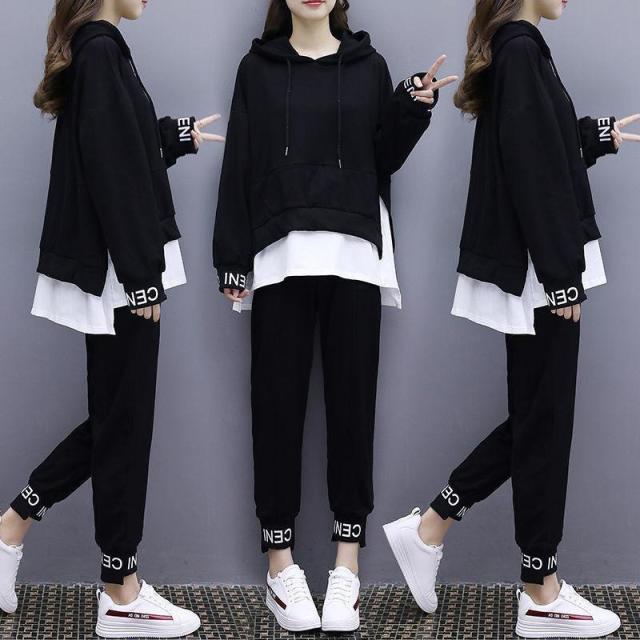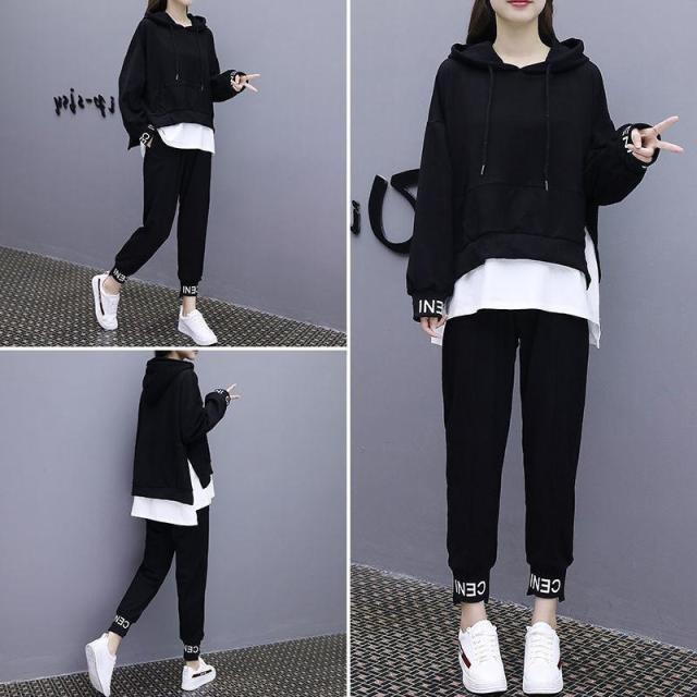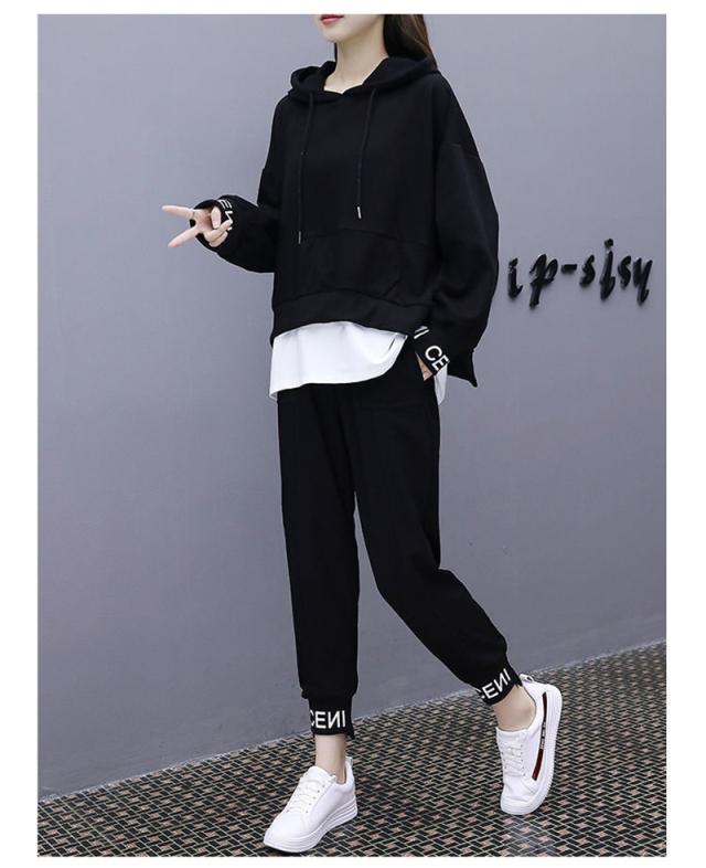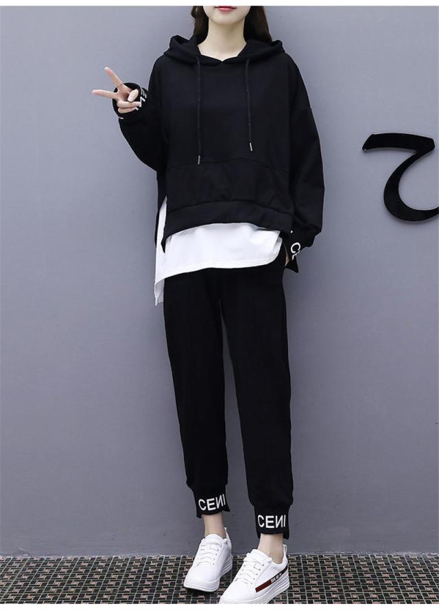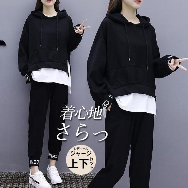 セットアップ ジャージ レディース スウェット 上下セット 長袖 春秋 重ね着風 パーカー 長ズボン スポーツウェア 運動服 着痩