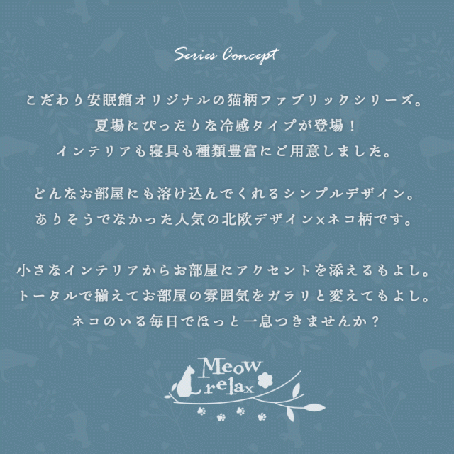 | ・冷感素材 熱伝導率の高い素材を使った生地を使用しています。肌から生地に熱が移動する時にひやりと感じる仕組み。肌にあたったままだとぬるくなるので、寝返りをうつなどをした時に放熱・吸熱を繰り返します。吸汗力が低い素材が多くベタつきがちなので、エアコンとの併用・エアコンのサポートにオススメ。 | |