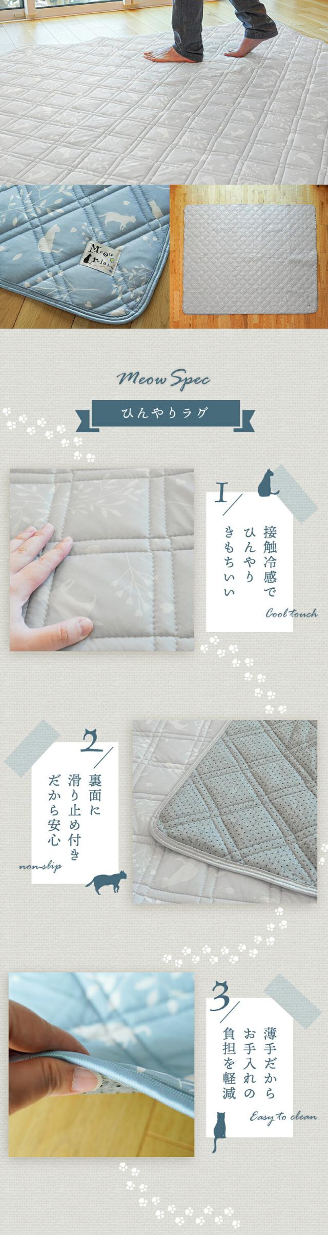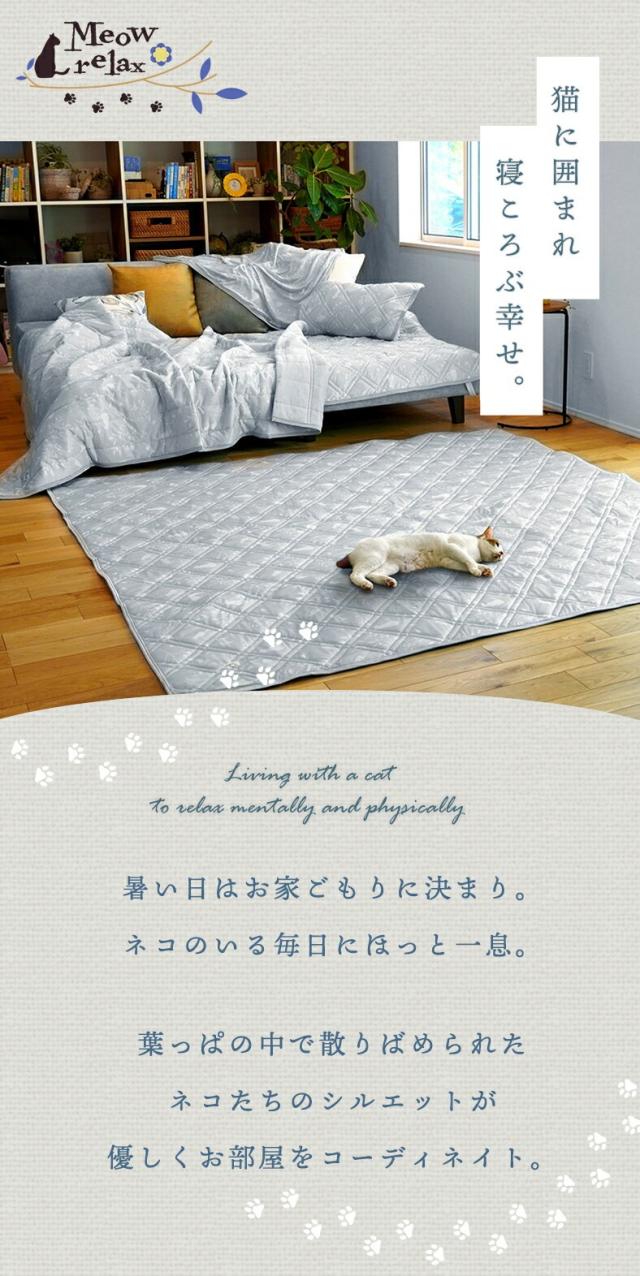 [ keyword | 当社限定品 ラグ 夏用 接触冷感 ネコ柄 ひんやり 滑り止め付き キルティングラグ ラグマット 長方形 3畳 3帖 約190×240cm 「ミャオリラ meowrelax」 洗える 冷感 夏 猫柄 デザイン おしゃれ オリジナル かわいい ねこ ネコ ウォッシャブル グレー サックス ]