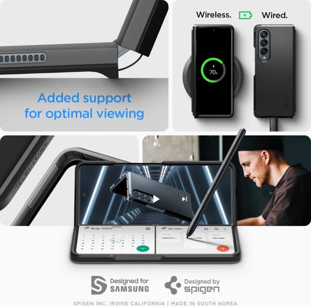Spigen製品の中でもっとも衝撃吸収が高いタフアーマーの特徴を折りたたみ式の端末でもそのままに。フルカバーでヒンジ(蝶番)部分も保護。