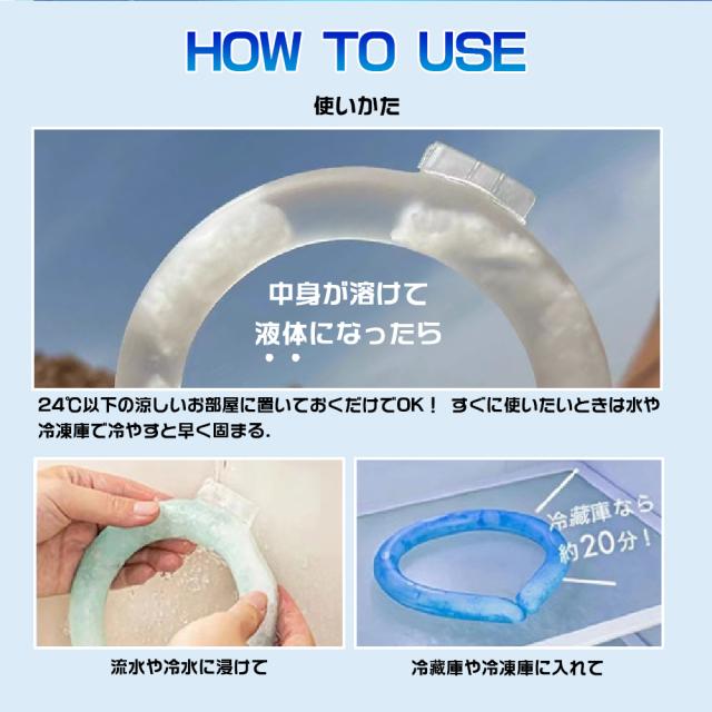 【酷暑に耐えられないときに、防暑アイテムとして自由サイズの氷の輪、軽量な防暑氷の輪、24℃以下で凍る首冷却器を男女兼