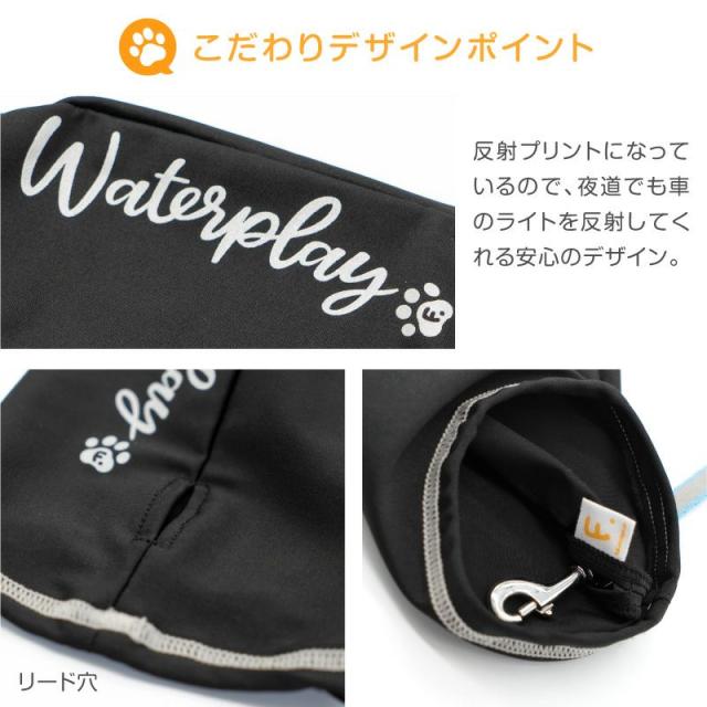 撥水加工を施した生地は、糸1本1本に水を弾く処理を行い、中程度の雨や水しぶきから愛犬をガードします(※防水ではないため強い雨には非対応)。日常の散歩や軽い雨の日に適した機能です。