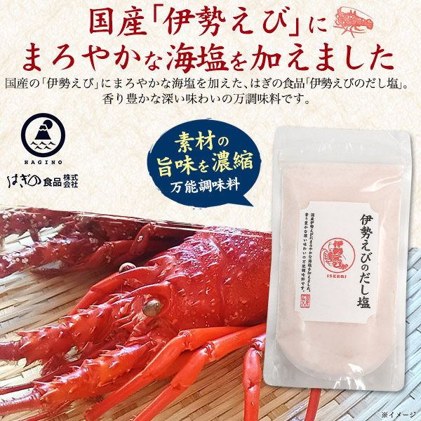 国産「伊勢えび」にまろやかな海塩を加えた、 はぎの食品「伊勢えびのだし塩」。