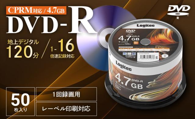 ロジテック DVD-R 50枚入り 2セット CPRM対応 1回記録用 録画用 4.7GB 120分 16倍速 記録メディア スピンドルケース 【LM-DR47VWS50W】