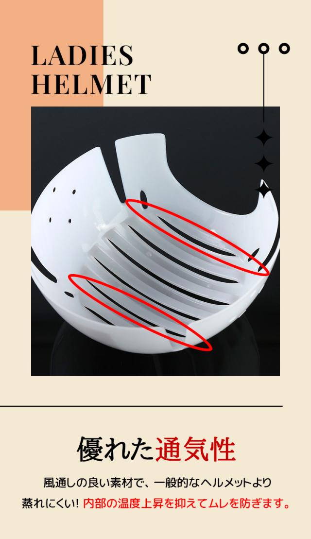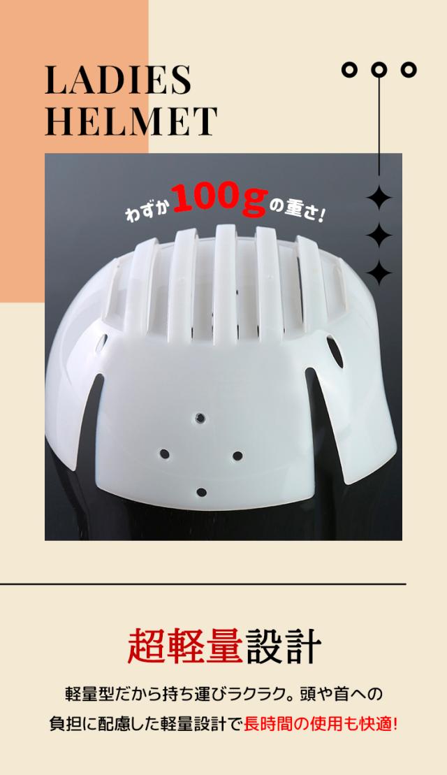 - 風通しの良い素材で、 一般的なヘルメットより蒸れにくい