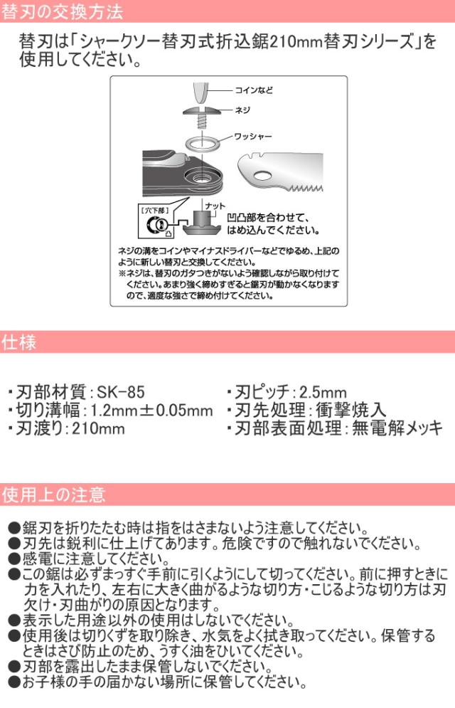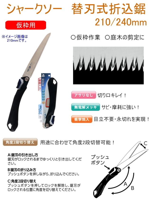 シャークソー 替刃式折込鋸 アサリなし 210mm 仮枠用 日本製 送料無料 仮枠用 折込式 アサリなし SHARKSAW