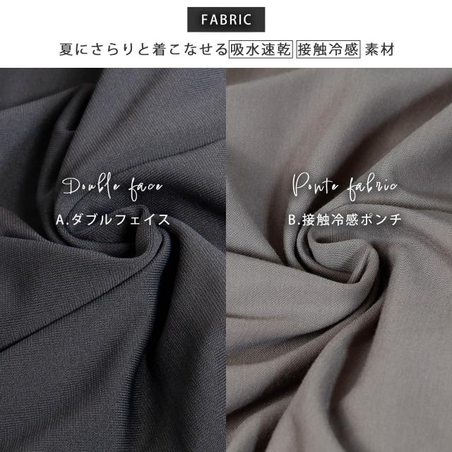 どちらの素材も、夏にサラリと着こなせる吸水速乾、接触冷感を素材を使用。