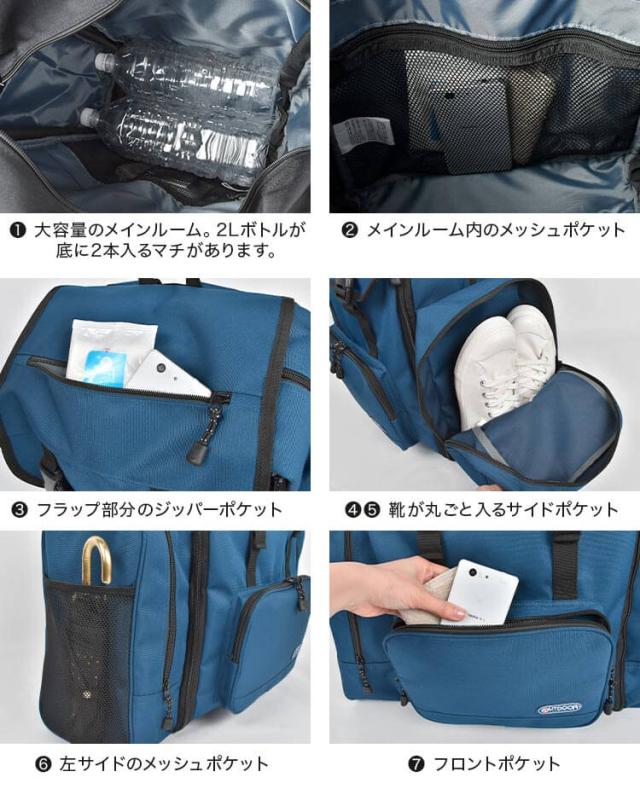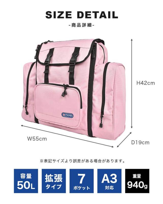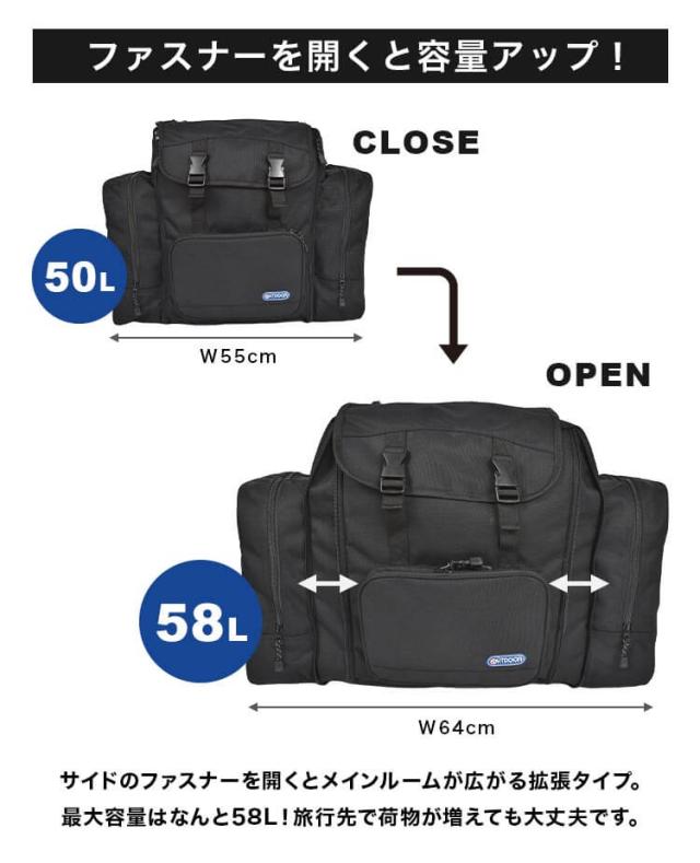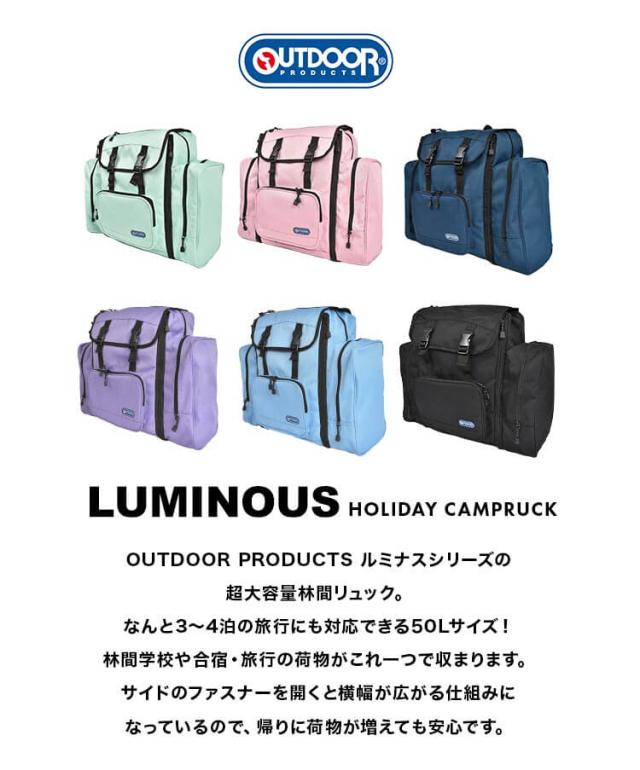 林間学校 リュック 修学旅行 男の子 女の子 サブリュック OUTDOOR PRODUCTS ルミナス 旅行バッグ アウトドア プロダクツ リュックサック 防災 大容量 バッグ 2泊 3泊 4泊 大型リュック バックパック 58L 50L 拡張 臨海学校 合宿 遠征 子ども 小学生 行楽 旅行 出張 黒 中学生