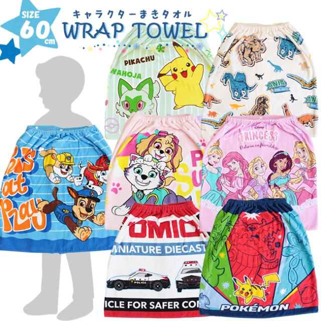 巻き巻きタオル ラップタオル 送料無料 60cm 子供用 キッズ 女の子 男の子 キッズ キャラクター ディズニー ポケモン パウパトロール トミカ 海 プール スイミング 水遊び キャンプ 着替えタオル ウエストゴム