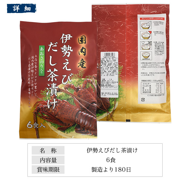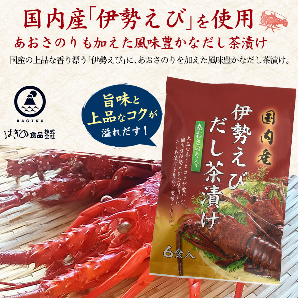 だし茶漬け 6食入り 伊勢えび 茶漬け 美味しい お茶づけ インスタント 高級 お茶漬けの素 食品 朝食 和食 調味料 はぎの食品 ポイント消化 送料無料 軽食 夜食 スープ おにぎり うどん 煮物 和食 おひたし ダシ ポイント消費 敬老の日 プチギフト 個包装