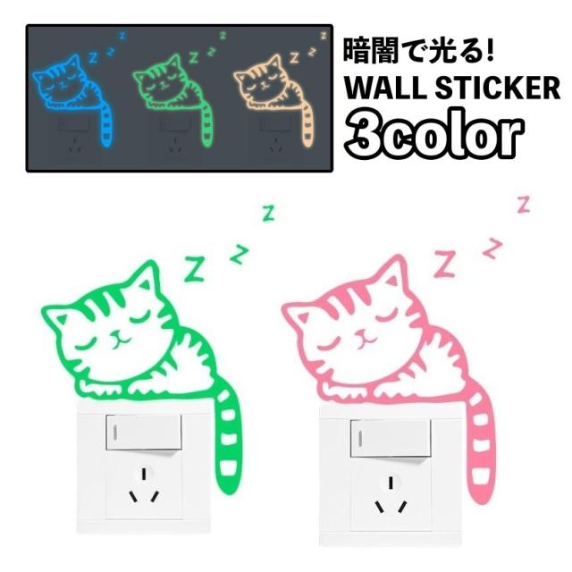 ウォールステッカー スイッチステッカー コンセントステッカー 蓄光 光る 壁紙シール シールタイプ ネコ 猫 ルームデコレーショ
