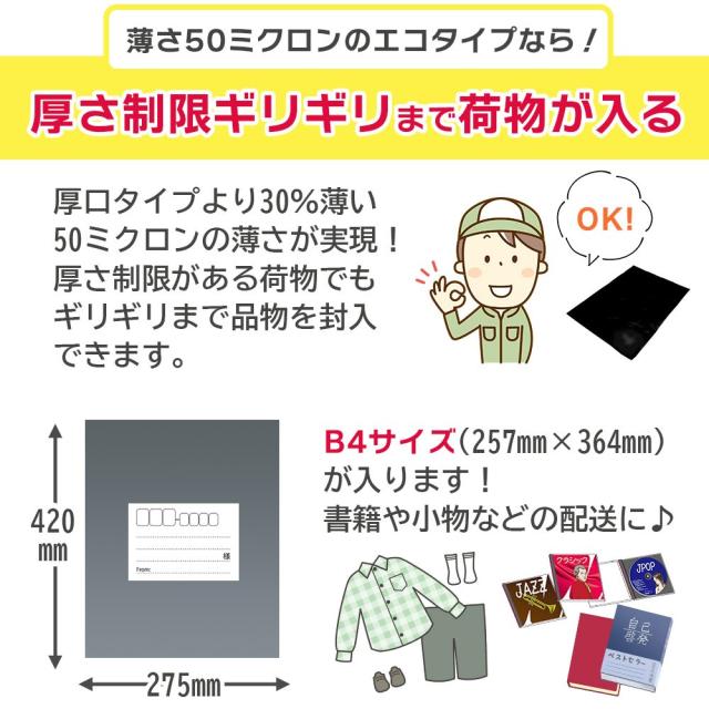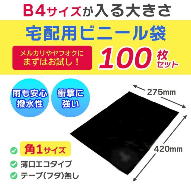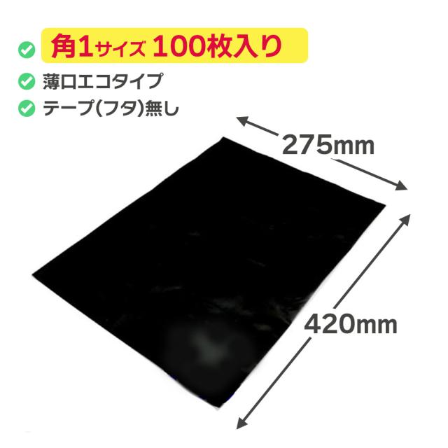 角1 黒 ビニール 封筒 宅配袋 エコタイプ 100枚 B4 サイズ 対応 送料無料 通販 宅配 袋 防水 封筒 角型 1号