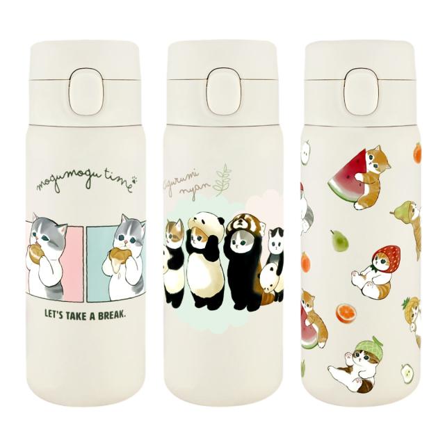 水筒 350ml ステンレスワンプッシュボトル mofusand ( 直飲み 保温 保冷 ステンレスボトル 女子 ねこ モフサンド ワンタッチ マグボトル マグ 水筒 350ml 保温保冷)