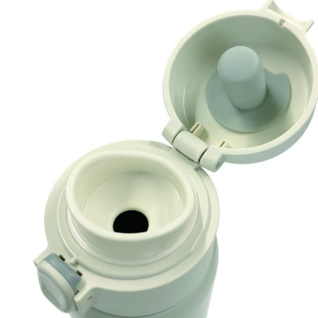 ワンプッシュで蓋を開けることができるので、片手でも簡単に操作できます。ロック付きなので安心、安全です。飲み口は樹脂製になっているので優しい口当たりで飲みやすいです。
