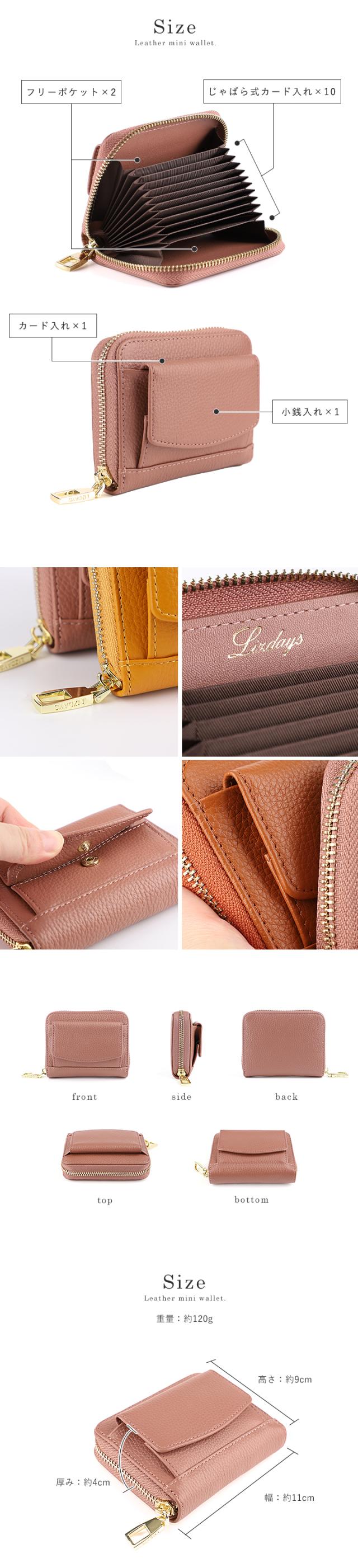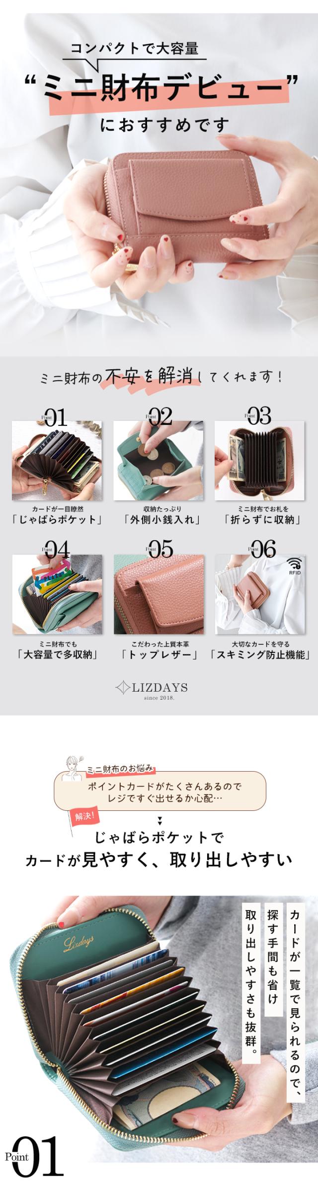 財布 二つ折り財布 ミニ財布 本革 牛革 レザー 上質 トップレザー 多収納 大容量 コンパクト じゃばら式収納 ボックス型小銭入れ スキミング防止 防犯 カードケース 小さめ 軽い 軽量 女性 レディース おしゃれ 大人 LIZDAYS リズデイズ 【lz-66105】
