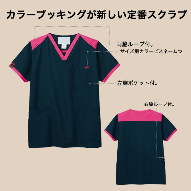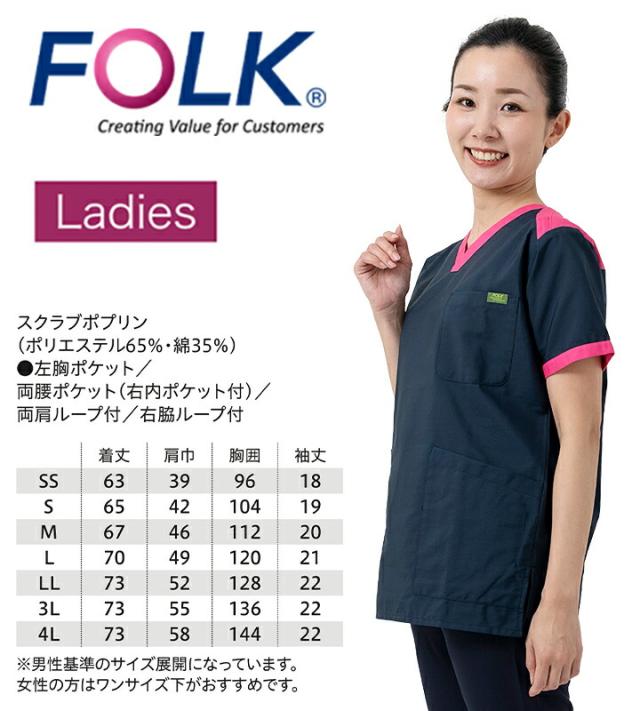 スクラブ フォーク 7054SC 男女兼用 メンズ レディース 医療 医師 医療白衣 看護師 介護 病院 歯科医 ナース FOLK ネイビー クリニック PANTONE 速乾性【送料無料】