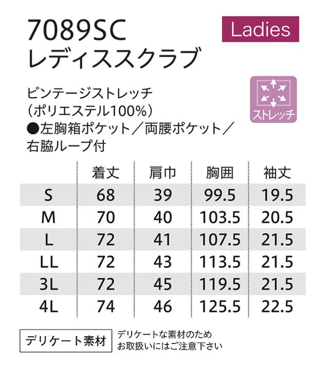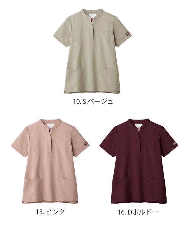 スクラブ レディススクラブ ディッキーズ Dickies 7089SC 半袖 女性用 レディース ストレッチ 医療 医師 医療白衣 看護師 病院 ナース FOLK. ピンク ワイン