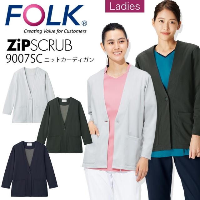 ニットカーディガン フォーク 9007sc 女性用 レディース ストレッチ 長袖 医療 医師 薬剤師 医療白衣 歯科医師 看護師 介護 病院 施設 クリニック 受付 ナース ユニフォーム FOLK 介護福祉士 工業洗濯 紫外線防止加工 ストレッチ