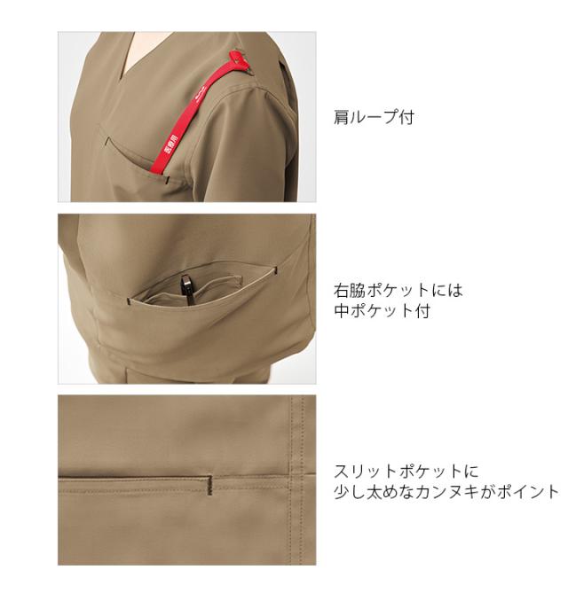 ◆仕様:かぶりタイプ(肩口スナップあき)、肩ループ付、左胸ポケット、両脇ポケット(右のみ中ポケット付)