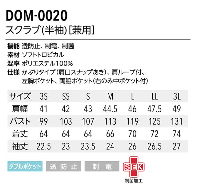 スクラブ 半袖 DOM-0020 男女兼用 メンズ レディース 医療 白衣 看護師 医師 ドクター クリニック 病院 透防止 制電 制菌 オシャレ UNITE DIVISION OF ME