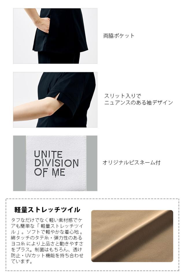 トップス 半袖 DOM-0027 女性用 レディース 医療 白衣 看護師 医師 ドクター クリニック 病院 透防止 制電 制菌 ストレッチ UVカット オシャレ UNITE DIVISION OF ME