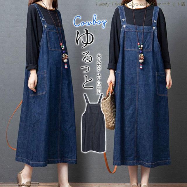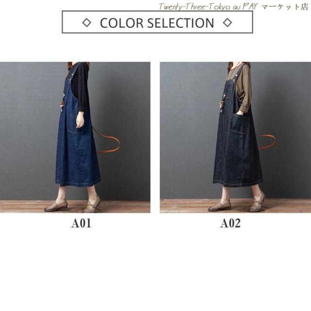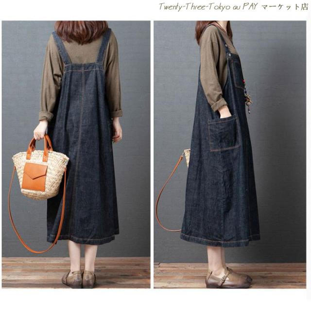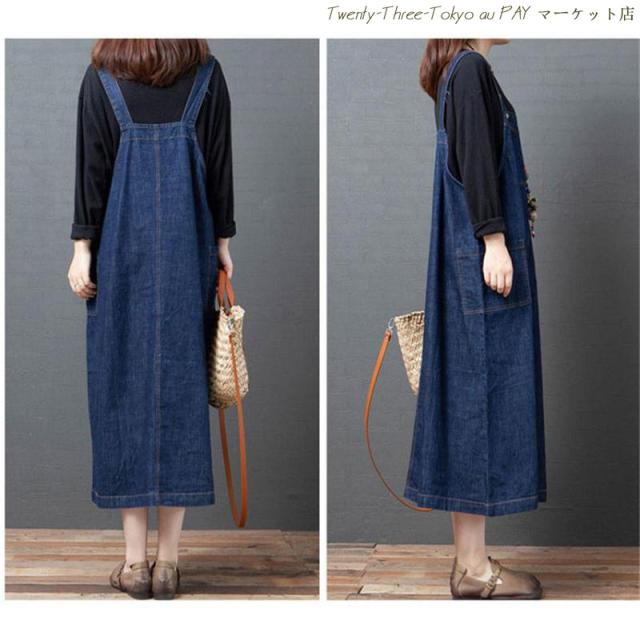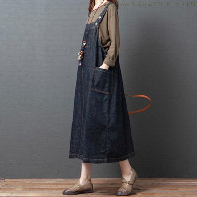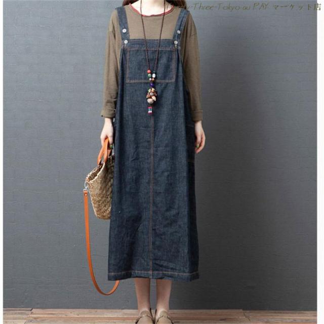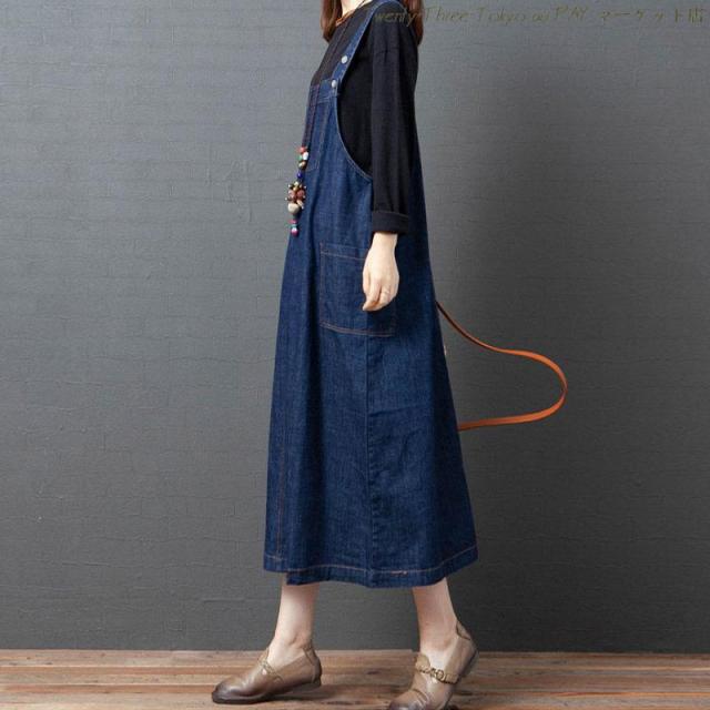 送料無料 ジャンパースカート サロペットスカート レディース デニムワンピース ロング丈 オールインワン キャミワンピ オーバーオール 体型カバー 母の日