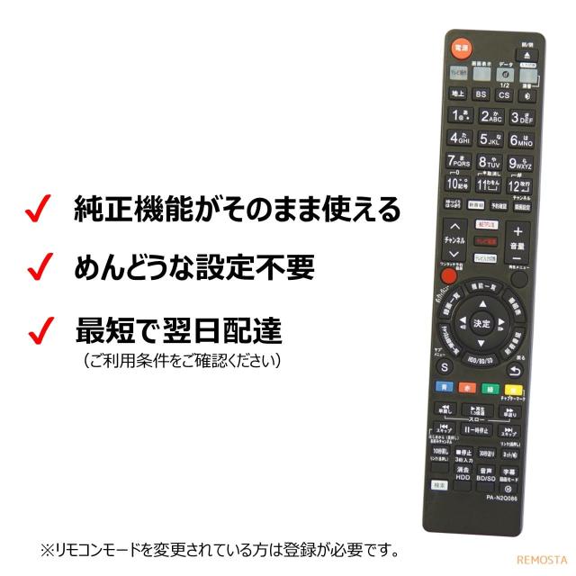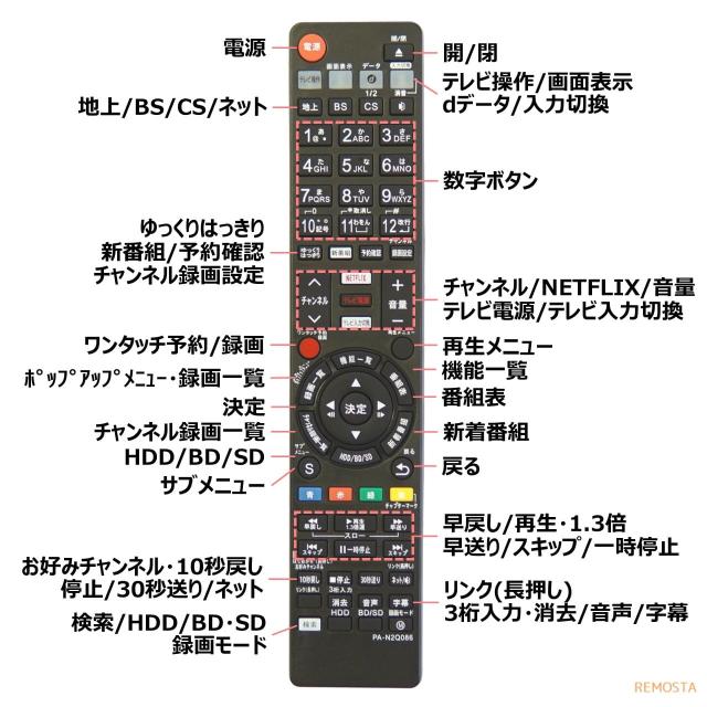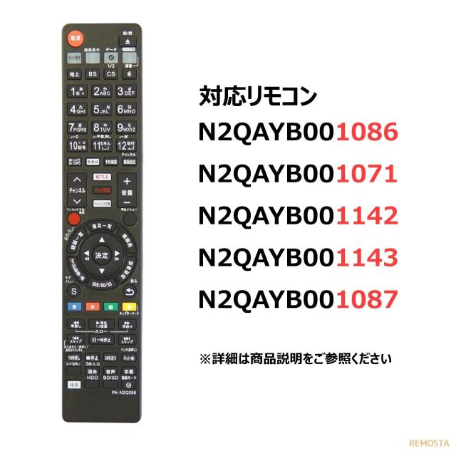 パナソニック ディーガ リモコン ブルーレイ N2QAYB001086 N2QAYB001071 N2QAYB001142 N2QAYB001087 N2QAYB001143 DMR-BRW520 DMR-BRW1020 DMR-BRG2020 DMR-BRZ1020 DMR-BRG2030 DMR-BRG1030 DMR-UBZ1020 DMR-UBZ2020 DMR-BX2030 DIGA レコーダー 代用リモコン REMOSTA