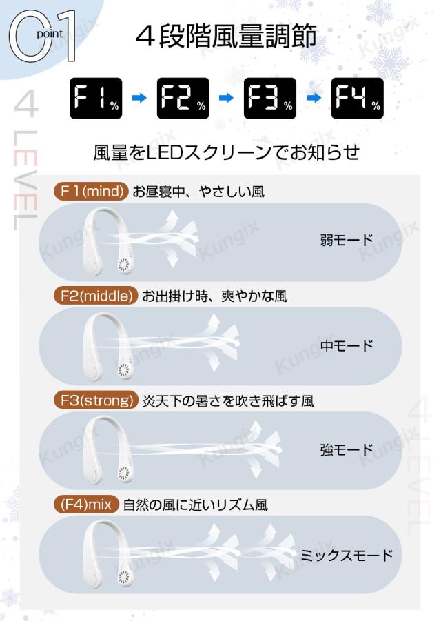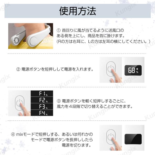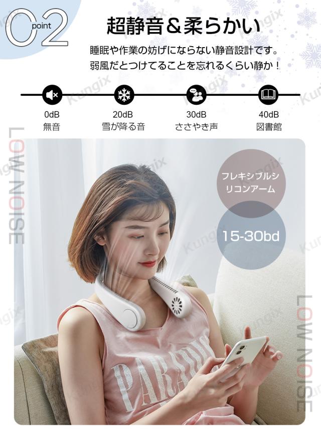 - 静音で、涼しく、軽い為首に負担なく邪魔にならない!長時間バッテリーで、保証がついているのも安心