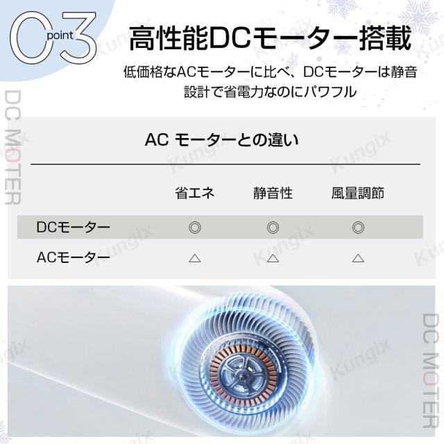 高性能DCモーター搭載、弱風だとつけてることを忘れるくらい静か!