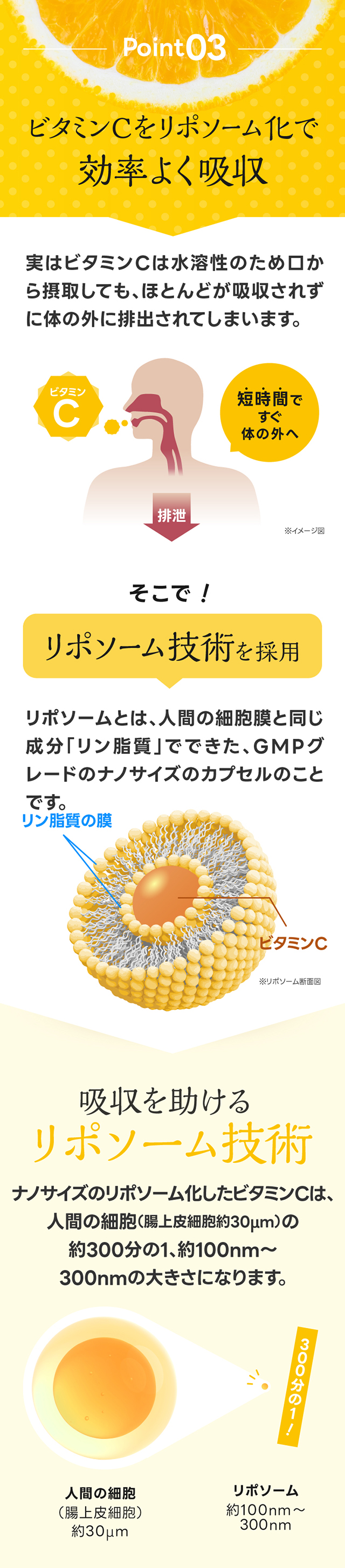 ビタミンCがグングン体を巡る。リポソーム技術で効率よく吸収。