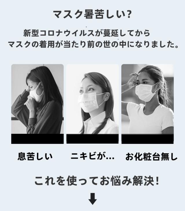 首の後ろ側からも風が出ることで涼しさを倍増します。熱中症対策にも効果的でマスク内部が蒸れずに息苦しくない。