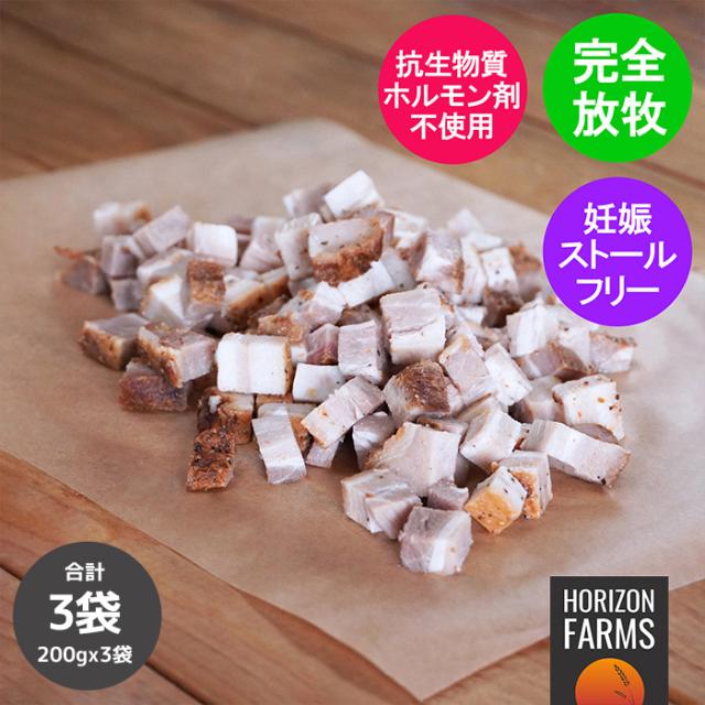 無添加・砂糖不使用 放牧豚 ベーコン ビッツ 角切り アメリカンスタイル 200g x 3パックセット 合計600g ナチュラルポーク 高品質