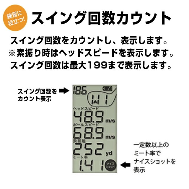 | ヘッドスピード表示範囲 | 10.0〜99.9m/s(メートル/秒) |
