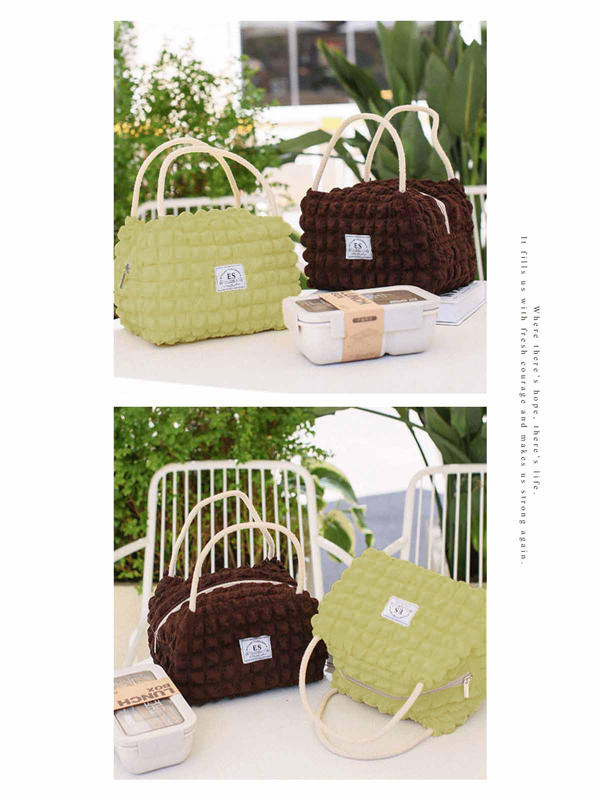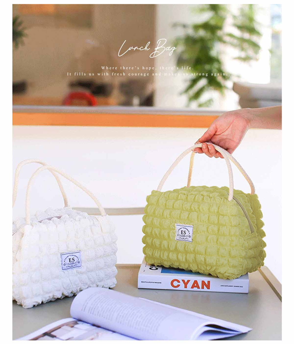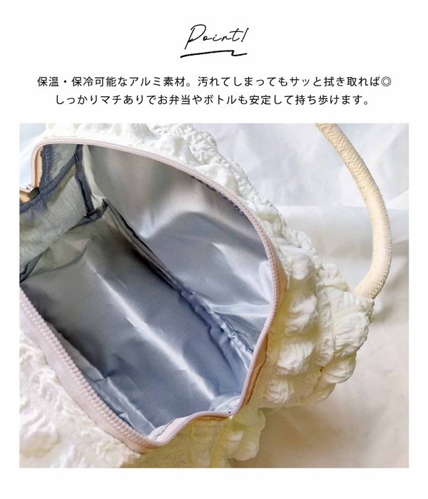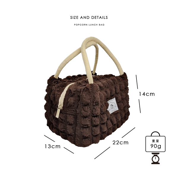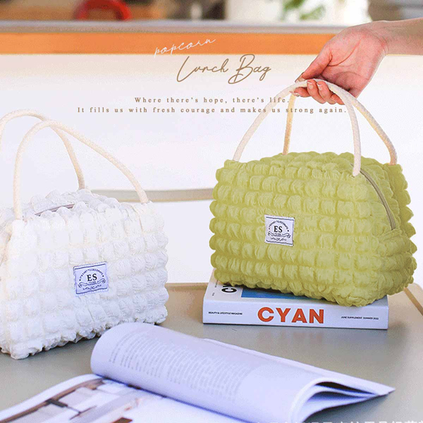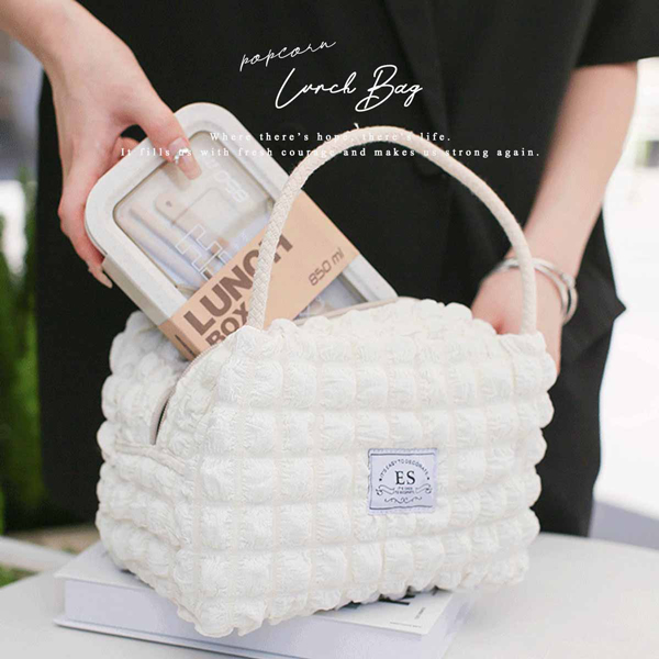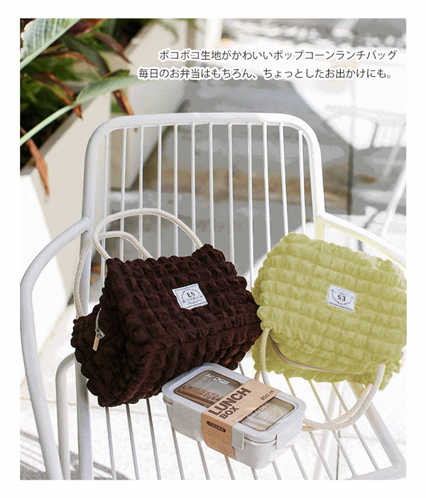 ポコポコ生地がかわいいポップコーンランチバッグ。