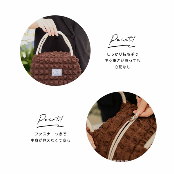 しっかりした持ち手でファスナー付のため、安心して持ち歩けます。