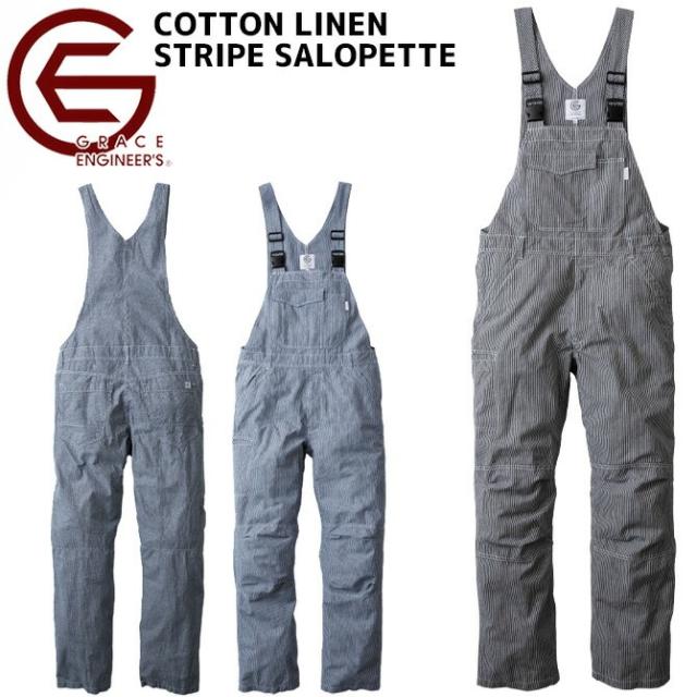 ENGINEERS(グレースエンジニアーズ)」の夏用綿麻ストライプサロペットです。