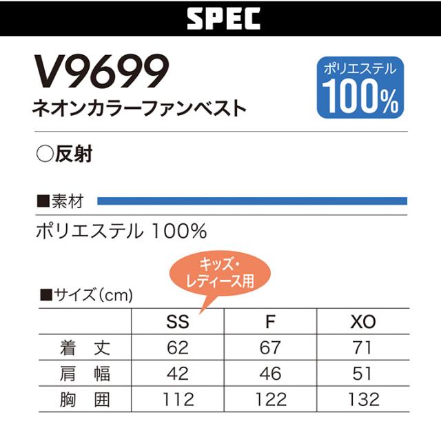 空調作業服 ネオンカラーファンベスト レディース・キッズ対応 快適ウェア V9699 反射