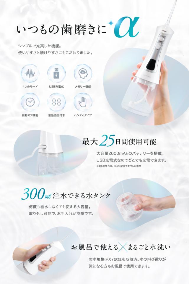 (商品説明ではありません): 歯磨き 歯ブラシ 口腔洗浄器 口腔洗浄機 ジェットウォッシャー 歯 デンタル 歯の汚れ 歯の黄ばみ 歯のブラシ 歯を磨く 歯磨きグッズ 歯ブラシグッズ 歯石 歯垢 歯の洗浄 口内洗浄 口中洗浄 デンタルケアグッズ 舌磨き アタッチメント ホワイトニング ホワイトニングケア スケーラー 電動歯ブラシ 歯間ブラシ 糸ようじ しかんぶらし 口臭ケア 歯周病 口腔ケア 口内洗浄器 口臭 口臭予防 口臭ケア 黄ばみ予防 黄ばみケア 歯科 充電器 防水設計 バッテリー メモリー機能 タイマー機能 持ち運び 旅行用 自宅用 20代 30代 40代 50代 60代 70代 2023 2023年 2024 2024年
